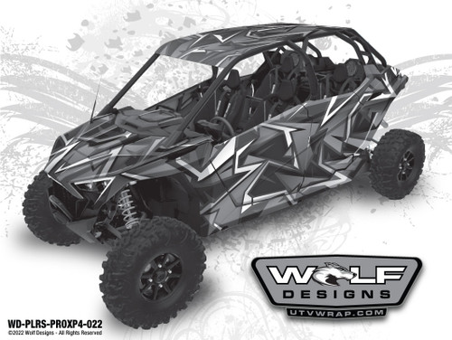 Wolf Designs' premium UTV wrap kits for the Polaris RZR PRO XP are digitally printed on the highest quality 3M brand vinyl ensuring the very best product with a finish and fit that's mistaken for paint. Each wrap kit is fabricated at the time your order is placed, and may take up to 7 business days to manufacture.
