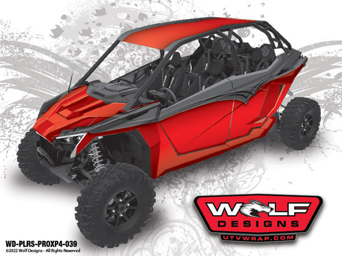 Wolf Designs' premium UTV wrap kits for the Polaris RZR PRO XP are digitally printed on the highest quality 3M brand vinyl ensuring the very best product with a finish and fit that's mistaken for paint. Each wrap kit is fabricated at the time your order is placed, and may take up to 7 business days to manufacture.