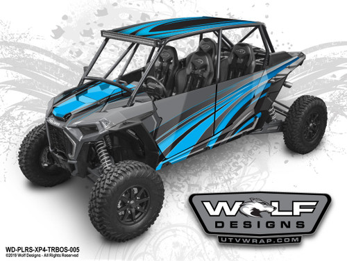 Wolf Designs' premium UTV wrap kits for the Polaris RZR Turbo S 4 Seat are digitally printed on the highest quality 3M brand vinyl ensuring the very best product with a finish and fit that's mistaken for paint. Each wrap kit is fabricated at the time your order is placed, and may take up to 7 business days to manufacture.